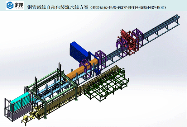 • 簡易不銹鋼管自動片膜包裝碼垛流水